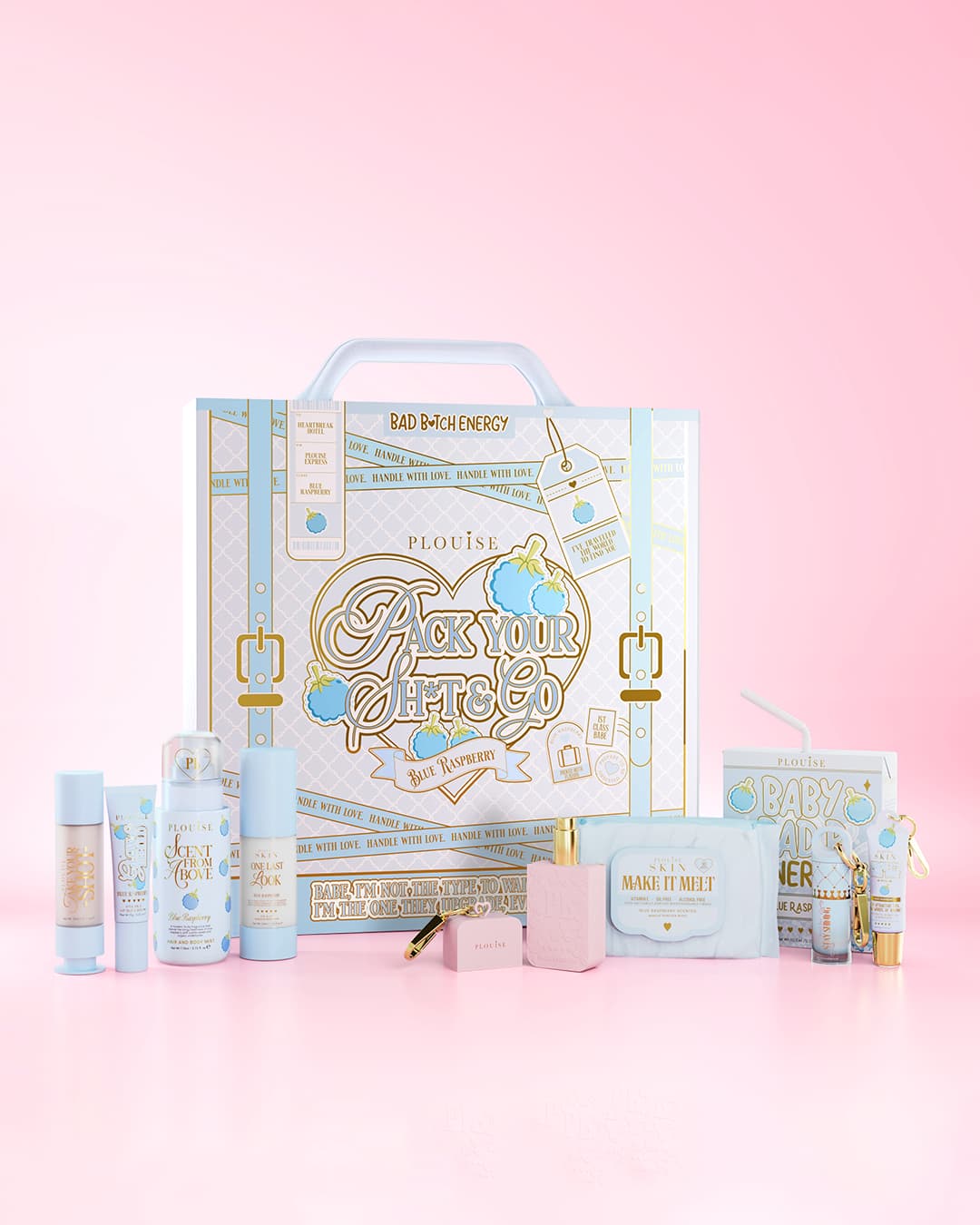Acesta este depozitul tău de îngrijire a pielii fără scuze, gata pentru a rămâne, miros suculent și strălucitor în mers. Am combinat iconicul Pack Your Shit & Go – Blue Raspberry Suitcase cu cel mai bine vândut Blue Raspberry Obsessed For Less pentru a vă oferi rutina completă acasă și în mișcare.